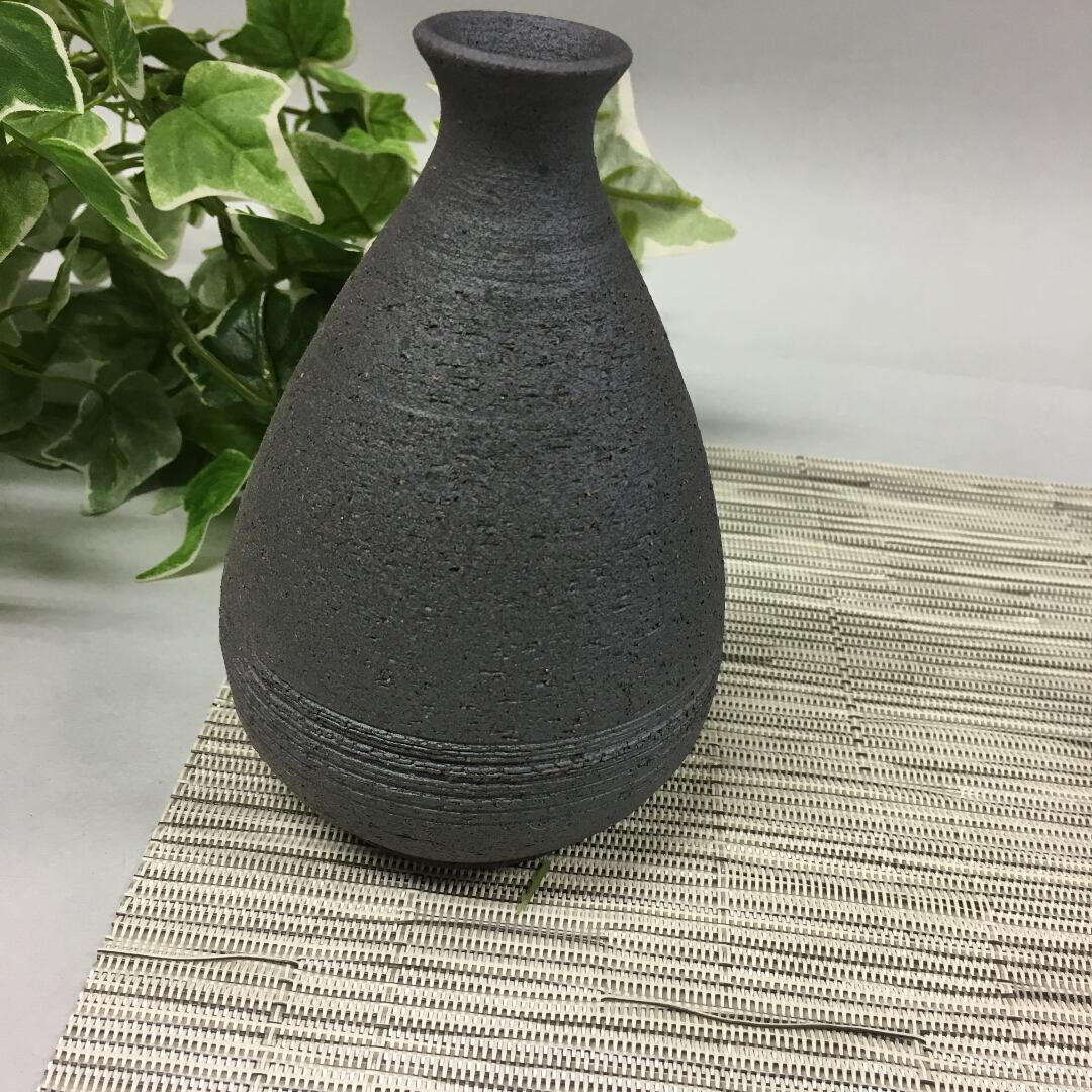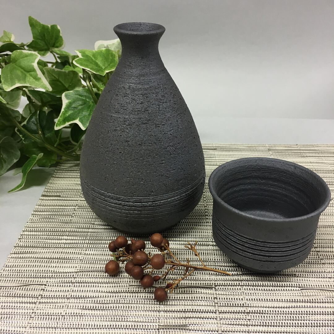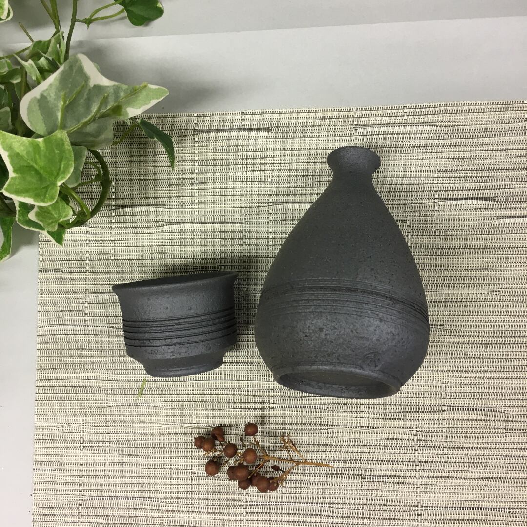 黒土の焼き締めの徳利とぐいのみです。